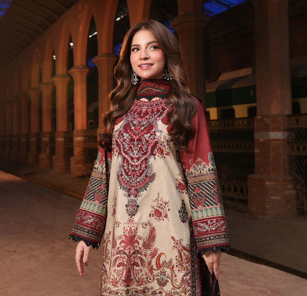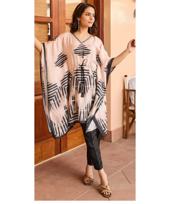 This straight kurta features a rich ethnic print with intricate traditional detailing.Designed with a structured neckline and full sleeves for an elegant silhouette.