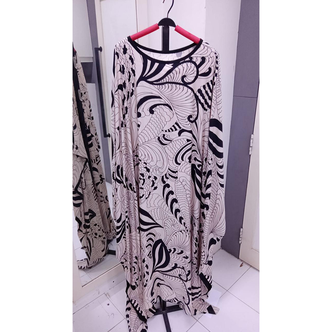 This oversized kaftan features bold abstract patterns in earthy tones.Designed with wide sleeves for a dramatic and flowing look.The loose fit ensures maximum comfort and movement.Perfect for contemporary styling, casual wear, or creative outfits.