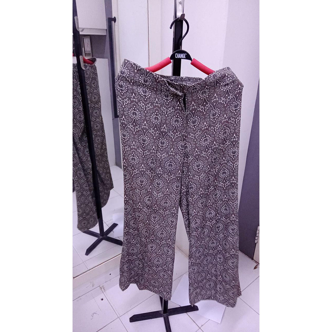 These pants feature a charcoal base with intricate ethnic-inspired prints.Designed with a relaxed wide-leg fit for comfort and movement.The elastic waistband ensures ease of wear throughout the day.Perfect for casual wear, travel, or pairing with solid-colored tops.