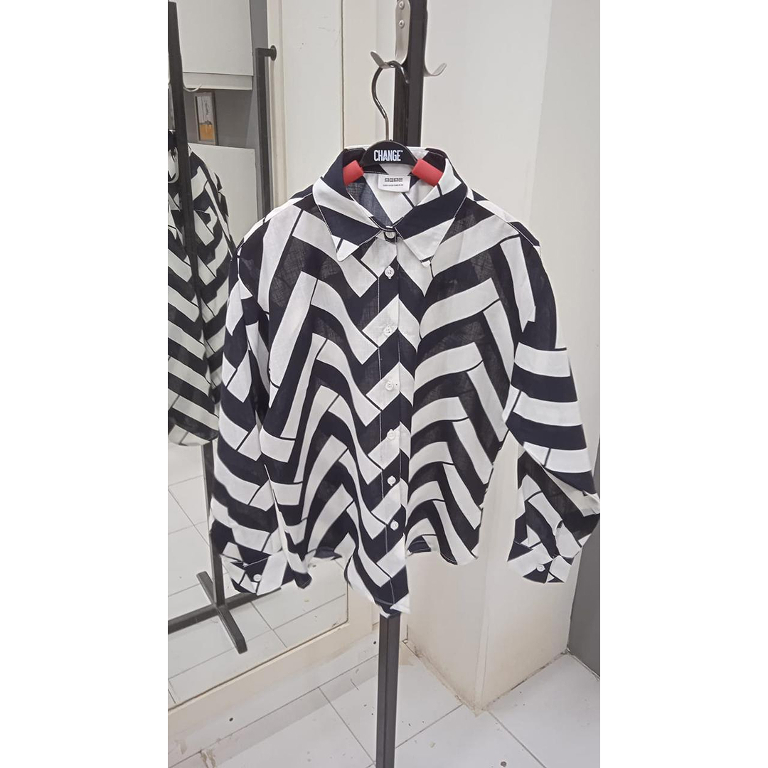 This button-down shirt features a striking black and white geometric pattern.Designed with a structured yet comfortable fit for a polished look.The lightweight fabric makes it suitable for both casual and smart wear.Pair it with trousers or denim for a modern and confident outfit.
